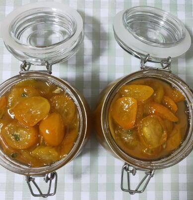 用料:金桔1000克、新鲜柠檬一个、糖300克、清水150毫升、食盐2勺。