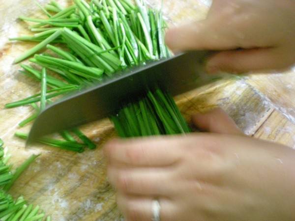 1、韭菜择好,洗净,切成5厘米左右的小段。