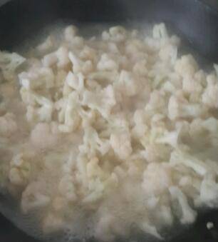 1、将水烧开倒入菜花,焯水五分钟捞出沥干水分。
