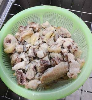 准备食材:鸡1只、姜适量、蒜5瓣、泡椒八个、大蒜叶适量。