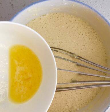 黄油隔水加热后加入,拌匀之后过一下筛,然后放进冰箱冷藏半个小时。