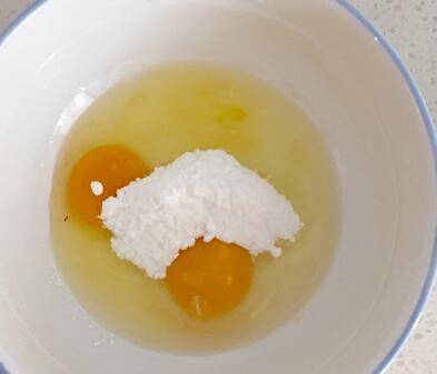先把鸡蛋加入糖粉打入碗里。搅拌均匀。