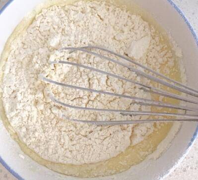 加入牛奶搅拌均匀,筛入低粉拌匀。
