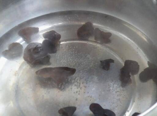 5、木耳提前泡发好入锅焯水后捞出沥干水。