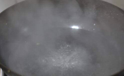 4、放入少许盐,用锅铲搅拌几下让盐融化,盛出沥干水。