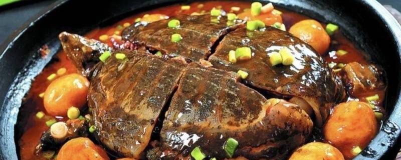 4、加入两瓶啤酒,没过王八壳。可适量添加一点水。然后加入切碎的香菜,一根葱。小米辣先加入一半,汤快熬干的时候,再加入另外一半,爆香,再提辣。
