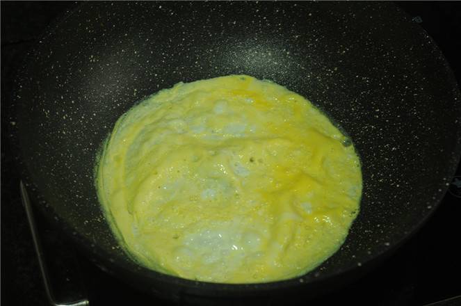 2、鸡蛋液打撒后煎成蛋饼。