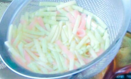 蔬菜面剪碎,入锅煮2分钟,捞出沥水。