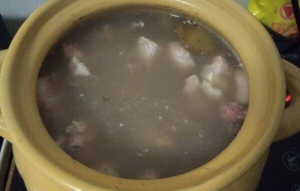2、在锅中倒入足量的清水,先把羊骨头放入锅内。