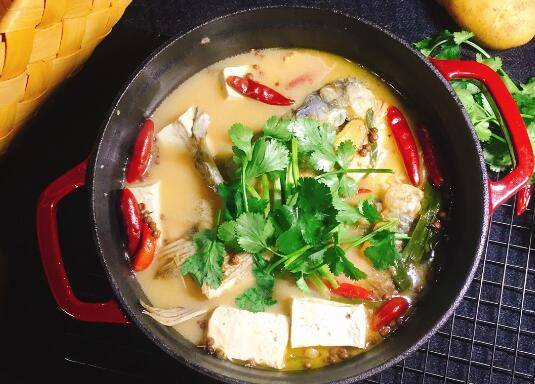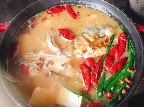 用料:鱼头一个、干辣椒一小把、大蒜子3-4颗、姜片3片、小米椒粒一小把、葱适量、香叶2-3片、豆腐一块。