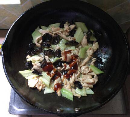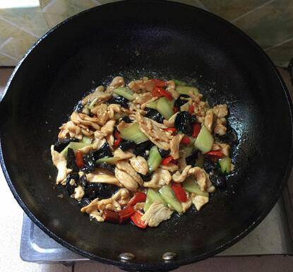 主料:鸡胸肉1块、黑木耳10克、黄瓜100克、红椒2个。辅料:大蒜10克、生抽20毫升、料酒10毫升、玉米淀粉3克、蚝油20毫升、精盐3克、原味鲜1克、食用油30毫升。