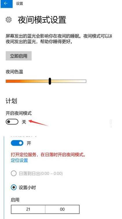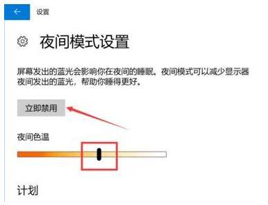 4、而此时开启按钮,变为禁用,点击即可关闭此模式。同时下方进度条,可进行色温调节,拖动到自己喜欢的效果即可。