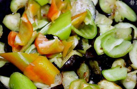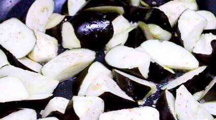 放入茄子小火煸炒,用不了几分钟,茄子就会炒软,记得用小火,不然会炒糊掉而茄子还未熟。