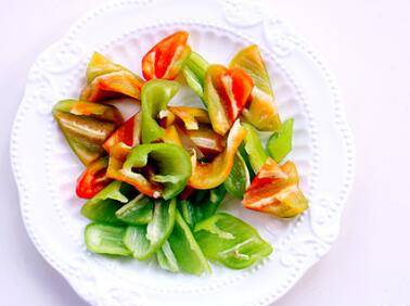 尖椒洗净去蒂去籽也切小块,另外蒜切成蒜末备用。