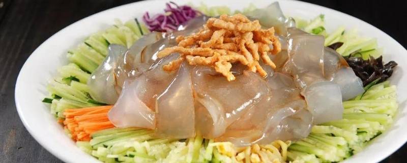 将大拉皮放入热水中泡上五至八分钟,泡软后捞出来放入凉水中。