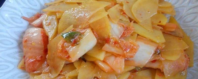 1、土豆切片,圆白菜切丝。
