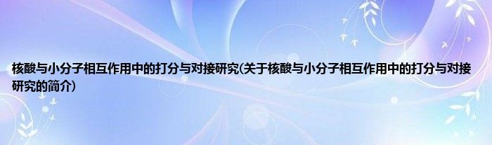 本文关于核酸与小分子相互作用中的打分与对接研究的简介就讲解完毕,希望对大家有所帮助。