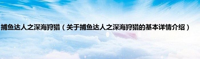 捕鱼达人之深海狩猎(关于捕鱼达人之深海狩猎的基本详情介绍)