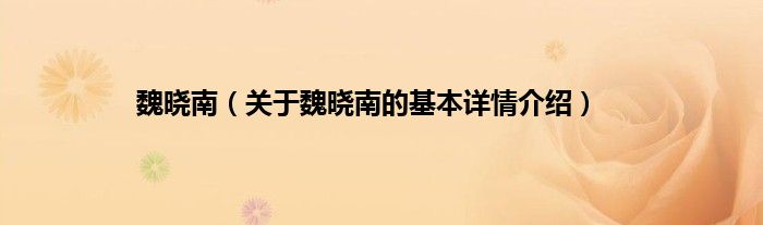 本文关于魏晓南的基本详情介绍就讲解完毕,希望对大家有所帮助。