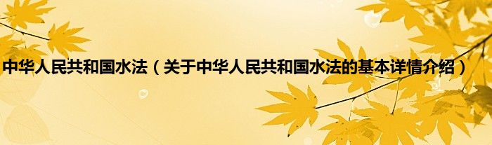 本文关于中华人民共和国水法的基本详情介绍就讲解完毕,希望对大家有所帮助。