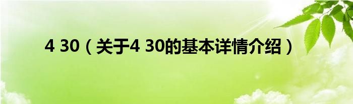 本文关于4 30的基本详情介绍就讲解完毕,希望对大家有所帮助。