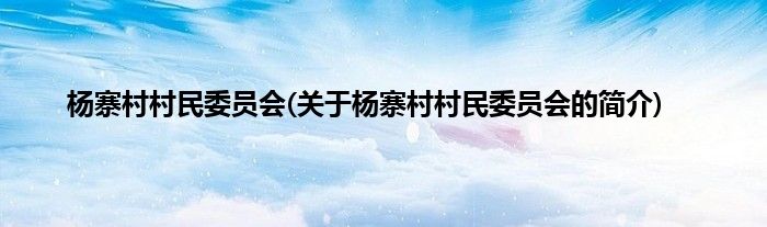 本文关于杨寨村村民委员会的简介就讲解完毕,希望对大家有所帮助。