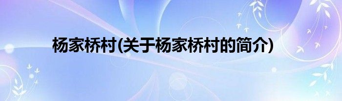 本文关于杨家桥村的简介就讲解完毕,希望对大家有所帮助。