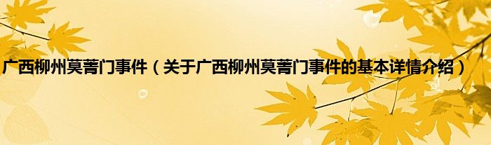 本文关于广西柳州莫菁门事件的基本详情介绍就讲解完毕,希望对大家有所帮助。