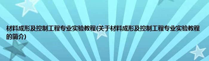 本文关于材料成形及控制工程专业实验教程的简介就讲解完毕,希望对大家有所帮助。