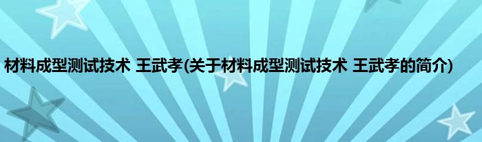 本文关于材料成型测试技术 王武孝的简介就讲解完毕,希望对大家有所帮助。