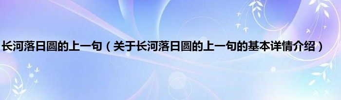 本文关于长河落日圆的上一句的基本详情介绍就讲解完毕,希望对大家有所帮助。