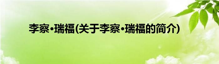 大家好,李察·瑞福,关于李察·瑞福的简介很多人还不知道,现在让我们一起来看看吧!