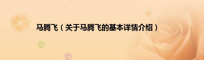 本文关于马腾飞的基本详情介绍就讲解完毕,希望对大家有所帮助。
