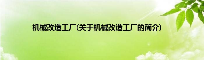 本文关于机械改造工厂的简介就讲解完毕,希望对大家有所帮助。
