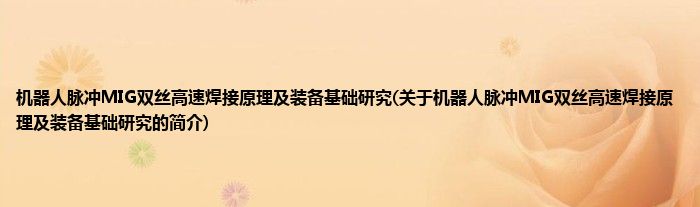 本文关于机器人脉冲MIG双丝高速焊接原理及装备基础研究的简介就讲解完毕,希望对大家有所帮助。