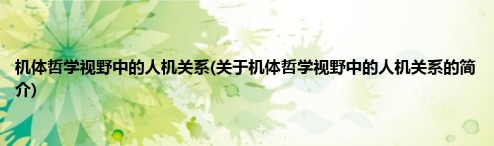 本文关于机体哲学视野中的人机关系的简介就讲解完毕,希望对大家有所帮助。