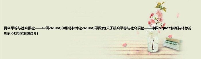 大家好,机会平等与社会福祉——中国"伊斯特林悖论"再探索,关于机会平等与社会福祉——中国"伊斯特林悖论"再探索的简介很多人还不知道,现在让我们一起来看看吧!
