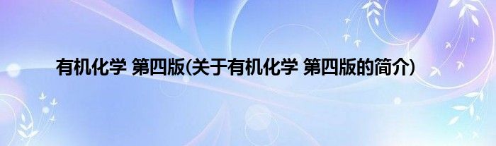 本文关于有机化学 第四版的简介就讲解完毕,希望对大家有所帮助。
