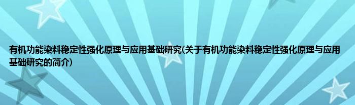 大家好,有机功能染料稳定性强化原理与应用基础研究,关于有机功能染料稳定性强化原理与应用基础研究的简介很多人还不知道,现在让我们一起来看看吧!