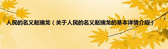 本文关于人民的名义赵瑞龙的基本详情介绍就讲解完毕,希望对大家有所帮助。