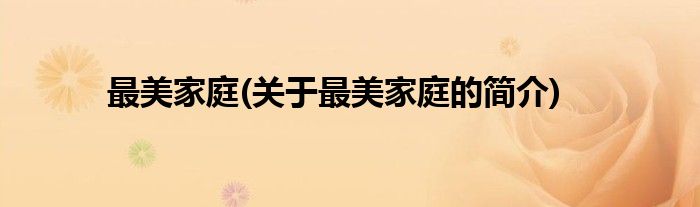 本文关于最美家庭的简介就讲解完毕,希望对大家有所帮助。