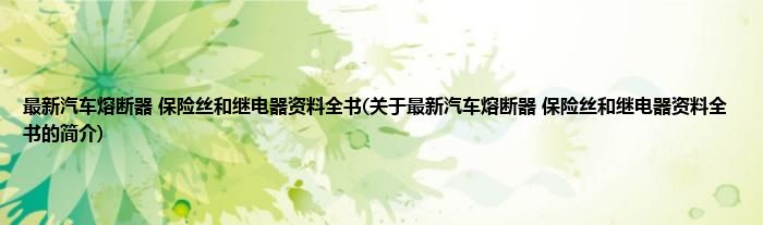 1、 《最新汽车熔断器(保险丝)和继电器资料全书》是2016年2月化学工业出版社出版的图书。