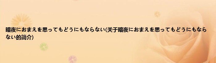 暗夜におまえを思ってもどうにもならない(关于暗夜におまえを思ってもどうにもならない的简介)