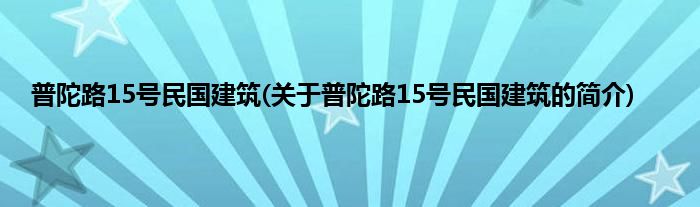 大家好,普陀路15号民国建筑,关于普陀路15号民国建筑的简介很多人还不知道,现在让我们一起来看看吧!