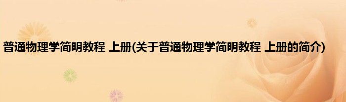 大家好,普通物理学简明教程 上册,关于普通物理学简明教程 上册的简介很多人还不知道,现在让我们一起来看看吧!