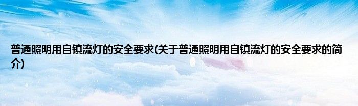 大家好,普通照明用自镇流灯的安全要求,关于普通照明用自镇流灯的安全要求的简介很多人还不知道,现在让我们一起来看看吧!