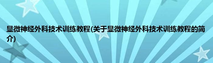 本文关于显微神经外科技术训练教程的简介就讲解完毕,希望对大家有所帮助。