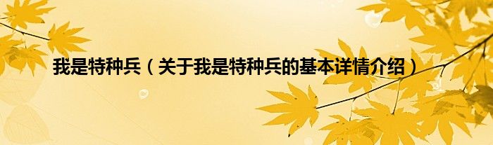 本文关于我是特种兵的基本详情介绍就讲解完毕,希望对大家有所帮助。