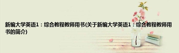 本文关于新编大学英语1:综合教程教师用书的简介就讲解完毕,希望对大家有所帮助。