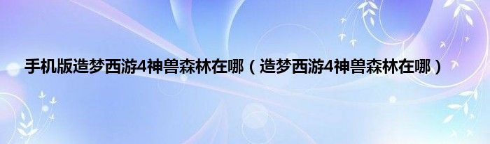 大家好,精选小编来为大家解答以上问题。手机版造梦西游4神兽森林在哪,造梦西游4神兽森林在哪很多人还不知道,现在让我们一起来看看吧!